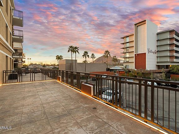 Luxury redefined at The Mark. This meticulously upgraded residence boasts an oversized balcony facing Camelback Mountain with incredible views, perfect for entertaining. Enjoy a chef's kitchen with marble countertops, Wolf gas cooktop, Bosch refrigerator, and U-Line wine refrigerators. Elegant touches include crystal chandeliers, Lutron motorized shades, California Closets, and a spa-inspired primary bath with under-cabinet lighting. The living space is enhanced by an electric fireplace and custom-built TV enclosure, while LED-lit balconies create a seamless indoor-outdoor experience. Exclusive resident amenities include a rooftop pool, fitness center, concierge services, and a 15% dining discount at the Valley Ho. Two private garage spaces with storage complete this exclusive offering.