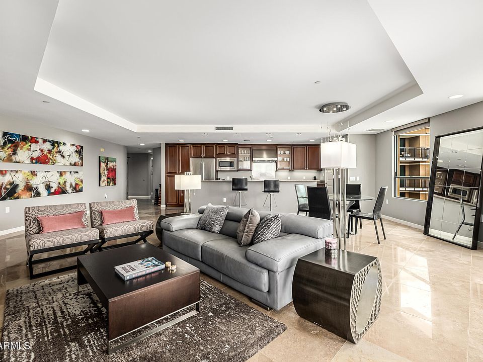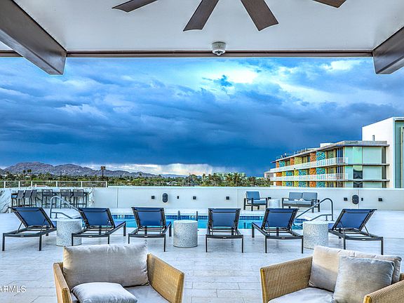 Wake up each morning to stunning views of Camelback Mountain and wind down your evenings with the sparkling lights of Old Town Scottsdale. This spacious 3-bedroom, 3.5-bath unit at The Mark is the perfect blend of luxury and everyday ease. Located in the heart of Scottsdale, this move-in ready home is a rare find. The large kitchen is appointed with gourmet appliances and lends itself to entertaining in the open great room. Each bedroom has an ensuite bath, making it ideal for family and guests. Relax in the primary suite sitting area - perfectly placed to enjoy those mountain views. Throughout the home, beautiful stone floors add warmth and timeless style. Enjoy the convenience of a concierge and coffee bar, stay active in the recently-renovated fitness center, or relax at the rooftop pool and spa with panoramic views of Scottsdale and the surrounding mountains. And when you're ready to explore, you're just steps from some of the city's best restaurants, shops, and galleries. Residents may also enjoy amenities at the Valley Ho Hotel across the street. Enjoy a front-row seat to all Scottsdale has to offer at The Mark.