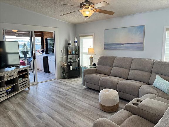This 2 bedroom 2 bath coastal home comes with a dock and a lift, providing direct access to Tampa Bay. It is a perfect location for boaters, kayakers and fishermen, or anyone looking to spend time outside. Watch the dolphins and manatees while sitting on your dock, in your sunroom or your hot tub. The home offers many updated amenities and a modern style. The kitchen remodel was completed in 2023 with all new cabinets, sink, granite countertops, and stainless steel appliances. A new AC was installed in 2022, and there are double-pane windows throughout. All furniture, appliances, washer/dryer and hot tub are included in the sale price. Price includes share for the lot and ownership in the co-op. Home is located in Americana Cove, a55+, resident owned, waterfront community only 10 minutes from downtown St. Pete, 20 minutes from two airports and 25 minutes to Gulf beaches. Low monthly fee of $380 includes 24 hour manned gate, private streets, water/sewer, lawn mowing/edging, trash pick up twice weekly and all amenities including heated pool, shuffleboard, bocce ball, two boat ramps and kayak launch, and a newly remodeled fitness room. And many clubs and activities to get involved in.