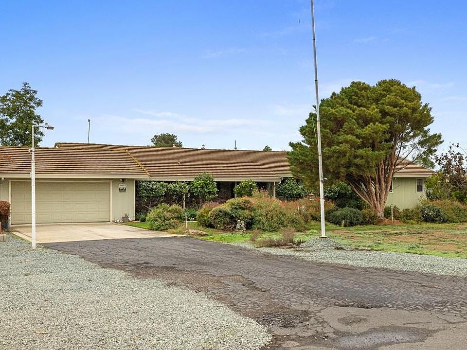 Welcome to 6803 N Cox Rd, a beautifully maintained 5-acre property in peaceful Linden. This 4-bed, 3-bath home features two master suites, all bathrooms with tile floors and granite countertops, and a spacious kitchen with granite counters, large island, and stylish backsplash. Recent upgrades include HVAC, solar water heater, and pool pump, all replaced within the last five years. Leased solar panels are fully paid off. Enjoy outdoor living with a sparkling pool, in-ground hot tub, and pergola-covered patio. A new 30'x40' shop on a concrete pad offers excellent storage or workspace. The property also includes producing walnut, grapefruit, orange, and Meyer lemon trees, plus a large raised garden bed. A perfect blend of country charm, modern comfort, and open space.