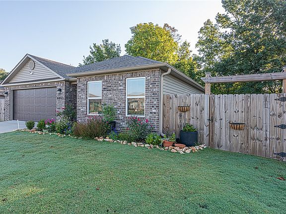 This 3 bed 2 bath home in Bentonville is minutes away from XNA, parks, schools, and community center! Less than 8 miles from Downtown Bentonville, new Walmart campus, and I-49! From the covered front entry head into an open concept living space with luxury vinyl plank flooring, an L-shaped kitchen featuring white cabinetry, subway tile backsplash, stainless steel appliances, pantry, granite countertops, large island with room for additional seating, and eat-in dining space! BONUS - All appliances convey! Relax and rejuvenate in the primary suite with dual sink vanity, jacuzzi tub ,walk-in shower, and walk in closet! Enjoy an additional two bedrooms and one full bathroom. Head out back to the covered back patio over looking your fenced in back lawn with mature tree and scalloped picket fence which backs up to a wet weather creek. Don’t Miss out! Act Now!