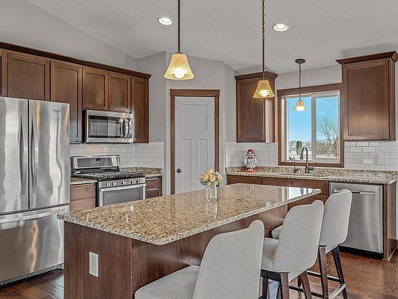 Large, 2014 built, bi-level split in great Brooklyn Park neighborhood! Four bedrooms with three on main level. Master Suite includes walk in closet, walk in tile shower, and large vanity. Open kitchen with large island, stainless steel appliances, and large pantry. Lower level features a walkout basement, an amazing entertaining space, family room with gas fireplace, another bedroom, and a 3/4 bath. Outside Includes a Massive 800 sf stamped colored patio with built in fire pit, a 15 x 20 Cedar Deck, and fully fenced in yard! New Roof 2020. New Air 2023.