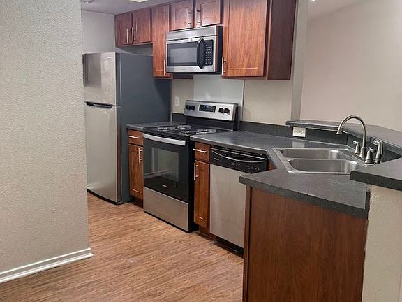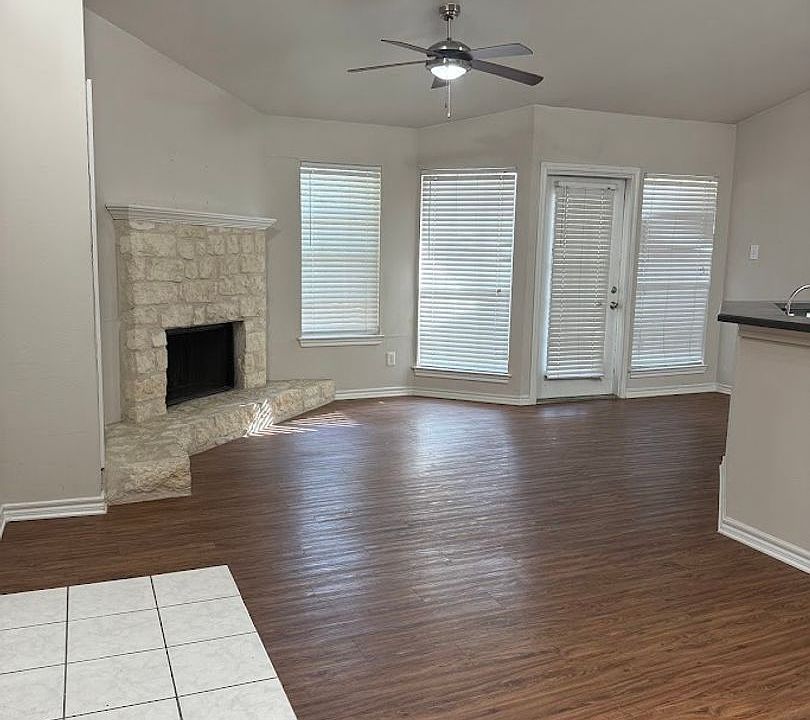Limestone fireplaceWide open one bedroomResort style poolStainless appliancesHuge patioDog parkAiry island updated kitchen