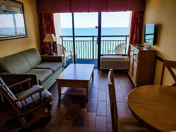 Direct OCEAN FRONT PENTHOUSE condo in the desirable Monterey Bay Suites. This building is located within a mostly residential area of Myrtle Beach referred to as “the Golden Mile”. On top of the unbeatable ocean views, this condo offers tiled floors throughout, granite counter tops, backsplash in the kitchen, bedroom furniture updated in 2019, living and dining furniture updated in 2020, a Murphy bed for extra sleeping options, and more! Outside of your beautifully appointed condo, you will enjoy all that this resort has to offer! - Multiple pools, lazy river, and laundry room. HOA dues include insurance, electric in the unit, water and sewer, trash pickup, Cable TV, Internet and pest control, and HO6 insurance. You have truly found a turnkey property! Close to the airport, dining, shopping, attractions, golf courses and more - this central location is so convenient for your vacation activities outside of the resort. This condo comes fully furnished so simply pack your bags and start your vacation! Be sure to check out the virtual tour for a 360 degree view of this turn key condo!