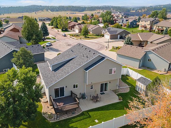 OPEN HOUSE TODAY 9/27 1PM-2:30!!! Welcome to Red Rock Meadows, one of Rapid City's most sought after neighborhoods in the beautiful Black Hills. Nestled on a quiet cul-de-sac just minutes from an 18-hole golf course with clubhouse and restaurant. This home delivers the perfect mix of modern updates, functional layout, and community amenities buyers dream of. Whether your hosting family and friends on the patio, enjoying a round of golf, or relaxing by the fireplace, this home offers effortless living. Three spacious bedrooms and two full bathrooms on the upper level, including a nicely updated primary en-suite with zero-entry tiled shower, double vanities and a large walk-in closet. Two additional bedrooms with plenty of natural light and storage. Oversized 3-car garage with convenient laundry room tucked right off the garage entry with an additional 1/2 bath designed for today's busy lifestyle. Mature, well-maintained landscaping for instant enjoyment complete with privacy fence and a large garden shed for yard equipment. MANY UPGRADES in 2023, Gas Furnace, Class 3 High Impact Shingles, gutters and down spouts. 2012 very tastefully updated Hardie Board Cement Plank and Batten Siding. 2020 LVP Flooring. Partially finished basement with two egress windows can easily accommodate extra bedrooms and bathroom. Call your favorite realtor today to schedule a private showing.