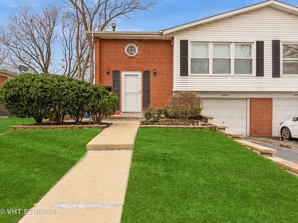 Solid Brick Duplex in established neighborhood near shopping and easy highway access. Fully fenced in private backyard with firepit & expansive patio make for great BBQ's in the summer. Nice freshly painted eat in kitchen and ample living room in close proximity of each other for a nice flow. Two bedrooms upstairs and a potential lower level 3rd bedroom that could be easily converted with a closet and egress already in place. Attached insulated garage which accesses the lower level. New baseboards & trim as well as blinds through-out and toilets. All new windows in 2021 & 25 year roof replaced in 2010. Furnace & Hot Water Heater replaced in 2019. Solid well maintained home that is awaiting a new owner to make it their own. Just 1 mile from Metra train station. No HOA. Can close quickly. As Is.