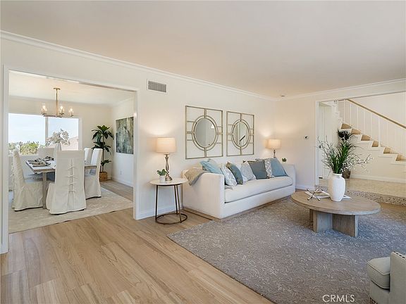 High ceiling entry welcomes you to your gorgeous updated home filled with ambient light. Spacious Living Room with large window, fireplace and crown molding opens to Formal Dining Room with ocean view and crown molding. Sunny updated Kitchen with garden window, ocean view, new stainless appliances, ample storage and large breakfast area which opens to backyard with covered patio and some ocean view. Downstairs also includes a Bedroom overlooking the garden, remodeled Bathroom, hallway storage, and separate Family Room with bar/sink area, access to garden walkway, and direct access to 2-car garage w/new epoxy floor & finished walls.