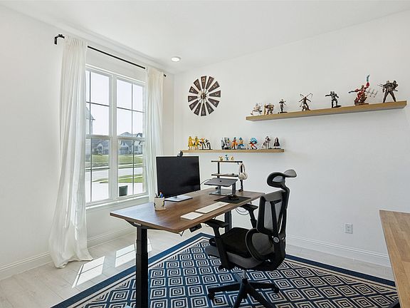 Welcome to this exceptional Drees custom home located in the sought-after Canyon Falls community of Argyle. Perfectly positioned on a prime lot backing and siding to a lush greenbelt, this property offers both privacy and serene natural views. Designed with elegance and functionality in mind, this home is ideal for multigenerational living with two luxurious primary suites, each featuring a spa-inspired bath and spacious walk-in closet. The heart of the home showcases a gourmet kitchen complete with a gas cooktop, massive center island, and premium finishes, seamlessly flowing into the expansive living room filled with natural light. The formal dining room, highlighted by a dramatic statement fireplace, creates the perfect setting for gatherings and celebrations. Upstairs, you’ll find a large game room with an attached media room, providing endless opportunities for entertainment. Three additional bedrooms, each with its own en-suite bath and walk-in closet, ensure comfort and privacy for everyone. As a resident of Canyon Falls, you’ll have access to an array of resort-style amenities including two sparkling swimming pools, a splash pad, fitness center, dog park, fishing ponds, over ten miles of scenic trails, and a vibrant community center.