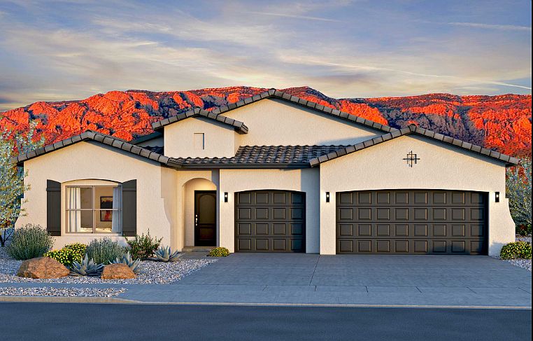 Welcome home to Lomas Encantadas - one of Rio Rancho's most sought-after communities. This beautiful single-level home, ready early next year, was designed for easy living and effortless entertaining. The spacious layout features three bedrooms, two and a half baths, and a bright, open kitchen with a large island and gourmet touches that make every meal feel special. With the primary suite tucked privately toward the back and the secondary bedrooms up front, there's room for everyone to unwind. Skylights fill the home with natural light, while the expanded covered patio invites you to soak up that signature New Mexico sunshine all year long. Whether it's a lively gathering or a quiet night in, this home has a way of making every moment feel like home.