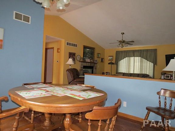 Nothing more charming than this 3 bedroom, 2 bath ranch home, resting on a 1 acre corner lot just minutes from Peoria. Open floor plan with vaulted ceilings, main floor laundry in closet just off kitchen, two dining areas-both open to living room, master suite with walk-in closet, large master bath, living room with nice brick gas log fireplace, newer, 14 x 12 3 season room with door to 12 x 24 deck- partially fenced yard, also 16 x 20 brick patio in front of home, plastered walls, full unfinished basement, shed, paved driveway. Great home come take a look.