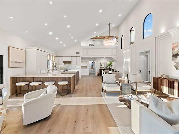 Reimagined, redesigned, and exquisitely renovated to perfection, this Pelican Bay villa is a true showstopper. Every detail of this 3-bedroom, 3.5-bathroom residence has been thoughtfully curated, offering a sophisticated yet comfortable living experience. A grand entrance sets the tone, where a breathtaking Restoration Hardware Cielo chandelier creates an unforgettable first impression. The brand-new kitchen is a chef's dream, featuring custom cabinetry, top-tier Thermador appliances, and stunning Taj Mahal, Perla Venata, and Cristallo quartzite countertops. An expansive island, breakfast bar, and a picture window overlooking a serene lake complete the space. The great room is designed for both comfort and entertaining, seamlessly connecting to the private backyard retreat - an ideal setting for admiring sunset skies across the lake and lush landscaping. A sparkling pool with a spa and fountain invites you to bask in the Florida sunshine, with coveted southern exposure ensuring abundant natural light throughout the day. Designed for both family living and hosting guests, the villa features an expansive first-floor primary suite with a spa-like bath and two oversized second-level guest suites, each with an en-suite bath and king size bed, providing privacy and comfort. Beyond luxury, this home offers peace of mind with all-new HVAC systems, insulation for energy efficiency, impact windows and doors, plumbing, electrical panel ready for car charging station, modern lighting throughout, pool equipment, and more. The meticulous design and execution of the renovation are evident in every detail, ensuring a home that is both stunning and functional. Located in X500 flood zone and in one of Naples' most coveted communities, Pelican Bay offers an unparalleled coastal lifestyle. Residents enjoy private beach access with gulf-front dining, world-class amenities including tennis, golf, a state-of-the-art fitness center, and miles of scenic walking trails. Its prime location places you just moments from Naples' finest dining, shopping, and cultural attractions. This one-of-a-kind villa is a rare opportunity to own a fully reimagined home in Pelican Bay’s premier enclave. Experience the perfect blend of luxury, comfort, and coastal elegance—schedule your private tour today!