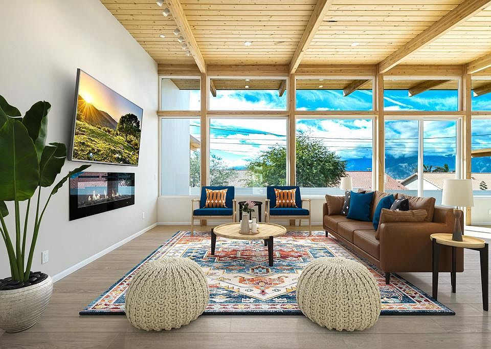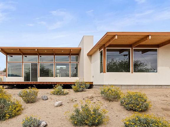 As Seen On HGTV/ House Hunters, this authentic Mid Century Modern Architectural dream home is nestled in the hills of Desert Hot Springs, known for its natural hot springs spas. This unique estate boasts 1820 SFT of space, 3 spacious bedrooms and 2 full bathrooms, and full laundry room, with designer touches, constructed in the famous 'Alexander' Architectural Tradition. Enjoy endless sunsets with sweeping southern facing views of the majestic Mt. San Jacinto. Built environmentally conscious, this super efficiency home includes premier insulation, all electric and solar panels equipped, Zoned electric heat pump heating and cooling, electric vehicle ready wiring, electric on demand water heating, and zoned electric pumps for ultimate comfort. Shaded exterior wood overhangs. Park with ease in the fully enclosed and insulated garage. Additional features include insulated under floor space and T&G wood ceiling decking. This Mid-Century Modern architecture blends seamlessly with modern living, and spacious lots, No HOA dues or Mello Roos. It's the perfect blend of luxury and practicality. Minutes from Palm Springs and Joshua Tree National Park. Builder incentives include an interest rate buy-down or closing cost assistance with a good offer. Get Palm Springs style for an amazing price.