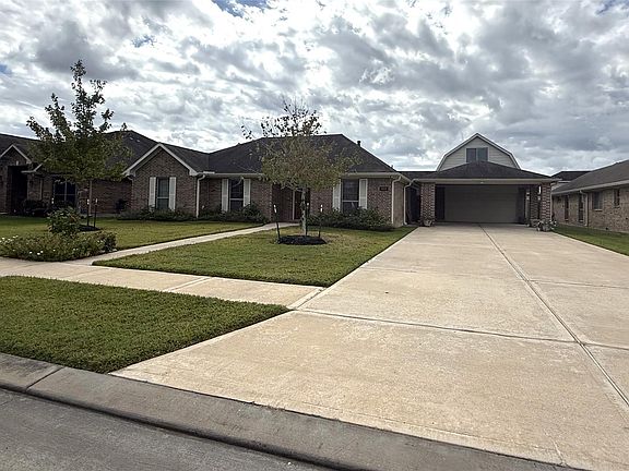 Welcome home to this beautiful 3 bedroom 2 bath home on oversized lot in Manvel’s Lakeland subdivision. This home offers open and spacious living, kitchen and dining areas with new luxury vinyl through out the main living spaces. Kitchen boasts upgraded 42” white cabinets, granite countertops and an extra large walk in pantry. Primary bedroom has vaulted ceiling and double door leading to the primary bathroom. Primary bathroom has dual sinks, oversized shower with dual shower heads and large walk-in closet. The four car garage is a dream with parking for a boat, trailer or multiple cars and space for a workshop with an extra single car garage door out the back. Garage area also has porta-cochere with large storage barn above and stub outs for plumbing making it ready to add a game room or guest suite. Great location within walking distance to schools, shopping nearby and easy access to Highway 288. Call today to schedule your showing of this beautiful home!