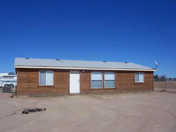 Great horse property Very nice log cabin manufactured home on 2.33 acres surrounded by other horse properties. Features include split 3 BR flooplan, very spacious eat in kitchen w/brk bar and tons of cabinets & counter space. Master bath has a garden tub + separate shower with 2 entries, one from indoor utility & master BR. Ceilig fans T/O except 3rd BR. Great covered deck on the back. Covered pipe horse pens, chain link fencing around home plus really nice tack room. Riding/arena area is located by the side of the home. Great sandy soil, excellent fast growing location half way between Phoenix and Tucson w/easy access to I-10, shopping.