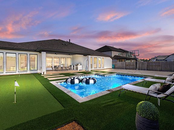 OPEN HOUSE SAT 1-3PM! Looking for luxury with the feel of comfort? Welcome HOME to the STUNNING 6807 Mirabeau Lane within a GATED section of Cane Island. ONE-STORY home shows like a MODEL w/ designer upgrades all throughout. Backyard is the ultimate entertainment space featuring a gorgeous heated pool, sport court, and artificial turf with putting green. Upon entering the double French entry doors you are welcomed by a tall 15-foot ceiling entry which leads to a spacious formal study. The family room is centered by a floor to ceiling fireplace. Kitchen features quartz countertops, double wall oven, 5-burner gas cooktop, walk-in pantry & island with built-in seating space. Game room with French doors and wall of windows off the kitchen. Primary suite includes a bedroom with a curved wall of windows and ensuite with dual vanities, garden tub, separate glass-enclosed shower & HIS AND HER walk-in closets. 3-full car garage with EPOXY flooring. Schedule your tour today!