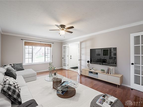Beautiful brick ranch home with over 3000 SF in the desirable Northview Estates. Located in the Northmont school district, this 3 bedroom 2 full bath home offers comfortable living & plenty of room to entertain both inside and out. Spacious entry leads to lovely Living Rm w/ crown molding, French Doors and hardwood floors that flow into the Dining Room. Adjacently located you’ll find the large kitchen w/ tons of cabinet, countertop space and newer SS appliances. Breakfast bar and eat-in area overlooking the backyard. Down the hall, you’ll find 3 spacious bedrooms w/ hardwood floors & closet organizers. Hall full bath updated. Primary bedroom has updated private en-suite bath. Thru-out the home you’ll notice fresh paint, updated interior doors & lighting. The basement is bright & inviting w/ plenty of recessed lighting & is the perfect entertainment space! Get cozy & watch a movie on the big screen in the theater area or play some cards & laugh w/ your friends in the "Pub" hanging out around the gorgeous herringbone top bar. 2 addt’l spaces would make a great home office or workout room! Has been plumbed for bathrm. Tons of storage also! Take the entertainment outside & enjoy a quiet evening around the firepit or spend a sunny day hanging out on the paver patio w/ shade cloth. Sitting on 1/3 acre, this yard w/ it’s new privacy fence offers plenty of room to play Large storage shed to store your yard tools & toys. Notable updates include New roof (22), furnace & air (7/23) w/ transferrable warranty, Privacy Fence (21) Deck (23) updated electrical panel. All you need to do is move in… Schedule your private showing today and make this your new home!