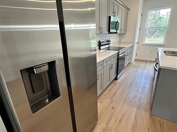 Unmissable Opportunity in Ocala! Don't miss out on the chance to live in this incredible new home. With 4 spacious bedrooms and 2 modern bathrooms, the property offers all the comfort and convenience you need. The open floor plan provides an ideal environment for entertaining family and friends, while the fully equipped kitchen with stainless steel appliances, a central island and ample cabinets is a dream for any culinary lover. Sliding doors connect the indoor area to the large outdoor area, ideal for outdoor leisure moments. The granite countertops, present in both the kitchen and bathrooms, guarantee sophistication and durability. The automatic gate and the garage with capacity for two cars provide convenience and security. In addition, the laminate flooring throughout the house offers practicality and easy maintenance, making your day-to-day life simpler and more enjoyable. Schedule your visit today and come see this excellent opportunity for yourself! Don't miss this opportunity!