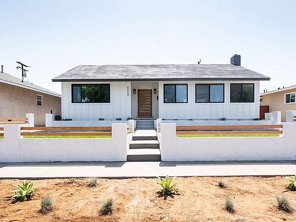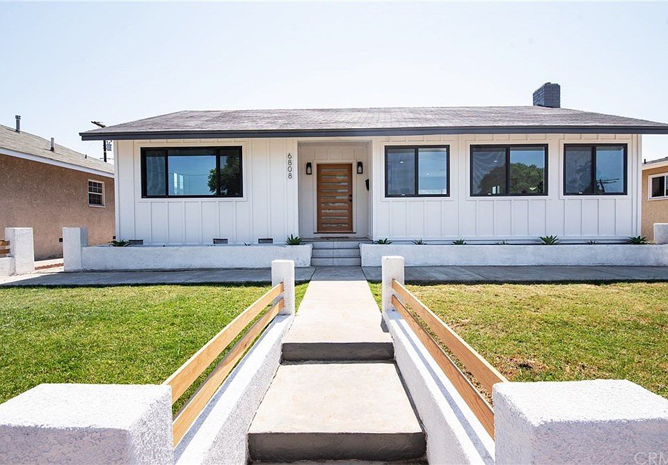 This stunning Modern Farmhouse Bungalow features 4 Bedrooms and 2 bathrooms in the Plaza neighborhood, a few blocks from Cubberley K-8 school. The Move-In ready home features an open floor plan great for entertaining and is accented with smooth drywall finish, new waterproof vinyl floors, and new baseboards. The gorgeous galley kitchen is highlighted by brass gold hexagon tile, brass plated hardware, an over-sized farmer sink, and a large peninsula that opens to the living room. The indoor laundry area is off the kitchen and has direct access to the backyard. The open living room is highlighted with a beautiful fireplace with designer quartz mantel, and a shiplap wall finish. All four bedrooms have updated flooring, smooth drywall, and new vinyl windows with tons of natural light. The master double shower is out of a designer magazine and features marble tile, custom glass wall, and multiple output valves. The master bathroom also has a double sink, new tile floors, and brass plate finishes. The property also has central Air Condition/Heating, an updated 200 Amp panel, copper piping, new dual pane vinyl windows, automatic sprinklers, and a two-car detached garage at the rear of the property. The private backyard offers a large grass area, as well as a concrete sitting area that is highlighted with a stained wood fence topper. The Property is located outside the Rancho Estates neighborhood, walking distance to El Dorado Park and a short drive to shopping and schools.