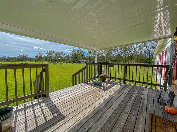 Welcome home to your quiet country retreat! This home is located in Jay on 10 picturesque acres. This 4bd/2 bth home was beautifully renovated in 2016 including: vinyl flooring, crown molding and window casings throughout, HVAC replaced, new kitchen appliances, countertops, light fixtures, refinished cabinets, under cabinet lighting, new kitchen island, new pool cage screens, non-slip surface around the pool, additional storage rooms with workshop built onto storage shed for ample storage, carport added, handicap accessible ramp, and new decking on the covered porches. Pull your boat or tractor through the drive-thru barn! Enjoy your pool on hot summer days, drive out to the shooting range for some fun, or cozy up around your fire pit. The owner is also a beekeeper and harvests his own honey from the property. Farming equipment, bees, and bee equipment is also negotiable. If this interests you please let us know!