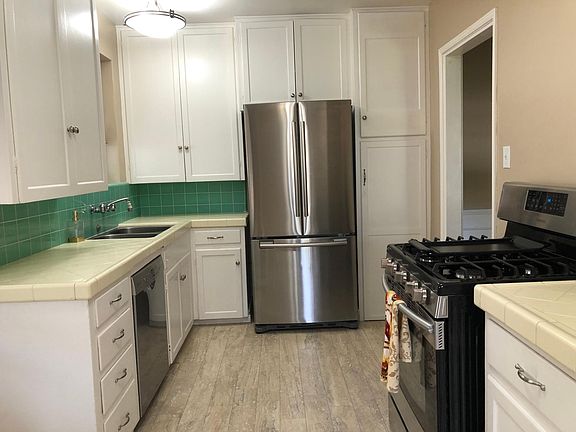 This is such a beautiful home on a quiet street full of trees. You will immediately notice the flowers, trees and landscaped front lawn as you walk up to this meticulously maintained home. As you enter you will see a blend of gorgeous original details and recently updated modern touches and conveniences. You will love the real hardwood floors, wood burning fireplace, formal dining room with wainscoting, custom paint, blinds on all windows, and updated light fixtures and ceiling fans. The eat in kitchen features 42" cabinets, great storage, all new stainless steel appliances including a new Bosch dishwasher, french door fridge with lower drawer freezer and gas range with 5 burners. The updated bath has an oversized vanity and new flooring. There is also a small mudroom/office/storage off of the kitchen as you head to the large back yard. The entire yard is surrounded by tall privacy fencing and has two separate areas. One area, surrounded by new vinyl picket fence, has grass, flowering trees and a large shade tree. The other area has several fruit trees (orange, lemon, and apple) to be enjoyed! Off of the back of the two car garage there is a private covered patio perfect for hobbies or relaxation. The garage has built-in storage shelves, a large utility sink, and new washer and dryer! Owner is open to most pets with an additional pet fee/deposit. Tenant will be required to show proof of renters insurance before moving in. Tenant pays Gas & Electric. Owner pays water, garbage and gardener. Tenant must have renters insurance. Trampolines, Hot Tubs, Water Bed not allowed.