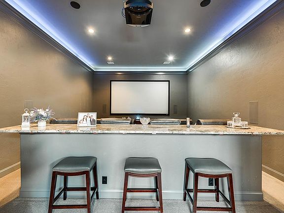 This one is a showstopper! Walk up to the double heavy, stately iron doors. GRAND living room & kitchen area w/ a cathedral ceiling spanning the length of the room featuring a magnificent chrome, spherical crystal chandelier. Absolutely magical everyday living experience! Incredible floor plan, Four bedrooms all with en-suite bathrooms, plus a half-bath, & Wall of windows w/ courtyard views to a five-star hotel swimming pool. A sequestered primary retreat w/ brick wall accent & a view to pool off sitting area, spa-like bathroom, & massive primary closet. Media Room is Cinematastic. 4 car gar.