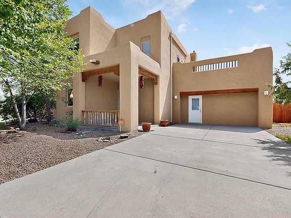 Nestled atop a serene arroyo, this exceptional property offers unparalleled convenience, mere minutes from Highway 599 and Cerrillos Road--perfect for commuters heading to Los Alamos (45 minutes) or Albuquerque (50 minutes). This location is the heart of a vibrant community, with tree-lined sidewalks and trails along Jaguar Drive, nearby schools, a public library, and the picturesque Swan Park. Plus, you can easily access historic Agua Fria Street for a quick 20-minute drive to the Railyard or Plaza in the charming heart of Santa Fe. Inside, the home welcomes you with soaring ceilings and is truly move-in ready, featuring a newer TPO roof and fresh exterior stucco. The original garage has been transformed into a stunning Artist Studio. *See supplemental remarks for more details*
