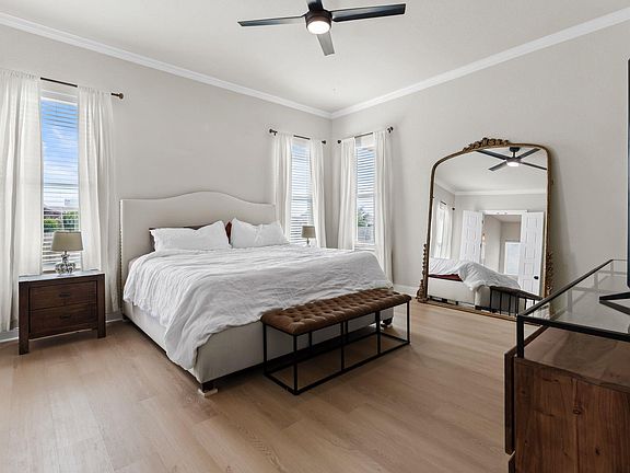 Round Rock living hits a whole new level in this standout Siena home; where curb appeal, thoughtful details, and a welcoming flow all come together. The first thing that grabs you is the unique exterior. The long covered entryway and gated front porch set it apart from the rest of the neighborhood, giving you a private spot to sip your morning coffee or chat with neighbors passing by. Inside, the 10-foot ceilings instantly open things up, while the light fixtures bring personality to every room. The front flex space works perfectly as an additional living room, dining room, home office, or playroom. The main living area feels bright and easygoing, with accent walls, several windows, and a contemporary fan adding just the right amount of flair. The kitchen steals the show with its layout and finishes: quartz countertops, wood cabinetry, gas cooktop, built-in oven, and stainless appliances. There’s a breakfast bar for casual meals and plenty of storage tucked into smart corners. The primary suite has that calm, elevated feel you want at the end of the day; soft light, crown molding, vinyl plank floors, and a dreamy ensuite bath with dual vanity, soaking tub, and step-in shower. Two additional bedrooms, also with vinyl plank flooring, make space for everyone to feel at home. Step outside and you’ll find a covered patio that leads to a grassy yard backing up to a wide community green space; no homes directly behind you, just open sky and peace. The neighborhood itself adds even more appeal, with a pool, basketball court, and pavilion right behind the home. Extra touches like a soft water loop, natural gas line on the patio, under-cabinet lighting in the kitchen, and an in-wall mount for the living room TV show just how much care has gone into making this house shine. This one has personality, practicality, and a layout that simply works for the way people really live.