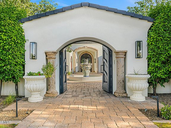 Welcome to Paradise Valley's most exclusive Italian Villa. From the moment you walk through the wood carved gates into the private courtyard, you will be mesmerized by the beauty and detailing of this estate. Between the Venetian plaster and authentic detailing, you will feel as if you've been transported to Italy. The home also features 8 fireplaces (5 interior, 3 exterior), 6 bedrooms, a sensational guest house and so much more. One of a kind open concept kitchen with granite farm sink, Decor 6 top gas range, Sub Zero fridge and freezer, copper prep sink and massive eat-in kitchen island. The full wet bar with onyx counter tops, beverage/wine fridge, ice make and plenty of stemware storage. Luxurious master suite is both grand and elegant. Double everything in the his/hers bathrooms including two showers, a soaking tub and even temperature controlled clothing closets. Outside, the fantastic backyard features a glistening pool and jacuzzi, sport court, outdoor kitchen, three different patio areas, stunning landscaping and a detached guest house. Do not let this Italian masterpiece pass you by.