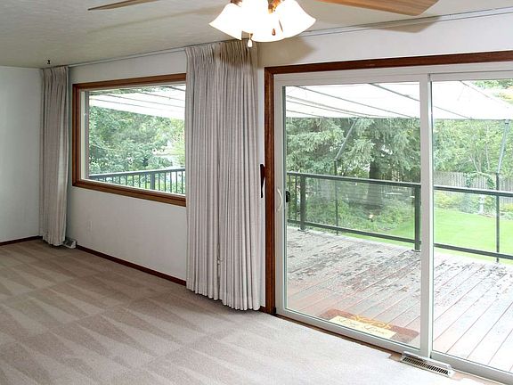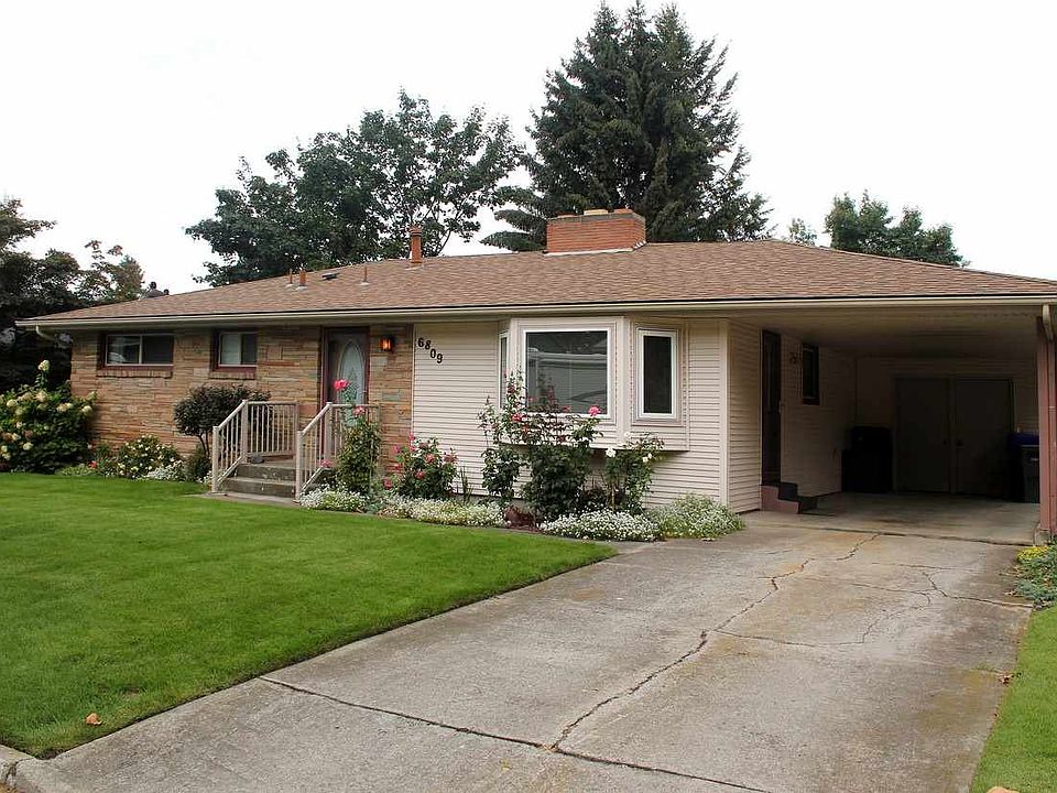 Spiffed and ready for new owners! Three bd., 1.5 bath ranch style home in convenient neighborhood. Lower level daylighted with egress from two sliders onto gorgeous park-like back yard. Cheerful and well maintained this home features covered large back deck, carport with extra storage, two gas fireplaces, gas FA/AC, fenced and sprinklered yards. Vinyl siding & windows. Plumbed for hot tub. Close to schools,library,shopping and bus stop. Updated electrical service.