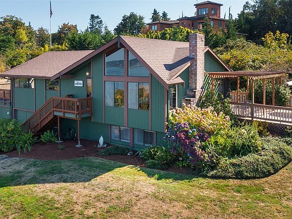 Perched above Puget Sound on coveted Maury Park Road, this Pacific Northwest contemporary home combines Mid-Century aesthetics with dramatic windows framing sweeping views of Seattle skyline, mountains and the Sound. Exposed beams accent the main room’s vaulted wood ceilings highlighting the impressive stone fireplace. An inviting floor plan of 2560 sq. ft. features 2 bedrooms & full bath plus primary ensuite up & a versatile lower level with family room, office & tiled shower. Two expansive view decks extend living and entertaining outdoors surrounded by a fully fenced yard complete with a fruit orchard & lush landscape capturing the essence of island living. The attached 3-bay garage provides ample storage and expansion possibilities.