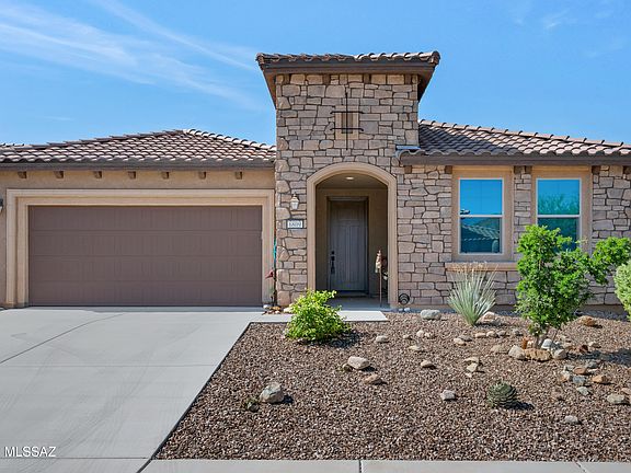 Open House Sunday 10/12/25 from 10am-1pm.. Wonderful Preserve model in highly coveted Del Webb At Dove Mountain. Community amenities include a spectacular clubhouse, pool/spa, pickleball, tennis courts, fitness center, Bocce ball and billiard table. Two bedroom, plus den, two full bathrooms. Nicely upgraded with beautiful, neutral ceramic tile flooring, chef lux gourmet kitchen featuring upgraded Coastal shaker Maple cabinets with full overlay doors and drawers, gas cook-top, granite/Quartz counter tops and a Whirlpool French door counter depth stainless steel refrigerator. Eight foot interior doors. Sliding glass door access to patio from dining area. High ceilings, several windows provide terrific natural light. South facing rear yard for full winter time sun. Tankless water heater. Huge laundry room with sink and additional cabinets. Some furnishings available on separate bill of sale. Over-sized 2.5 car garage perfect for golf cart and or additional storage.