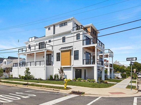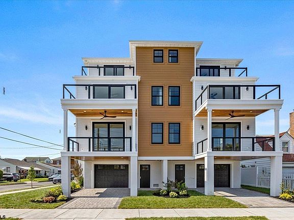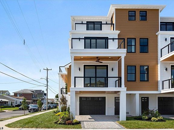 Located on the corner of Winchester and Newark Ave in Ventnor, this newly constructed townhouse showcases luxury living across its expansive 3,000 square feet. The exterior features premium black Anderson windows and durable neutral colored Hardie board siding. Upon entering, you are greeted by a 2 car garage with extensive storage space and an impressive four-stop elevator that seamlessly connects the home’s levels, complementing the spacious layout with 5 bedrooms and 4.5 baths. The main living area is open concept and LIGHT AND BRIGHT with natural light streaming in through the southern facing windows. The outdoor living spaces are equally impressive, with multiple decks offering ocean views from the third floor and generous room for outdoor enjoyment on the main floor covered patio! Additionally, an outdoor shower adds a touch of indulgence, perfect for rinsing off after a beach day! The bathrooms are adorned with sleek fixtures, while the kitchen and adjoining butler's pantry including an ice maker, wine fridge and an additional sink showcase sophisticated materials, exuding elegance and refinement throughout. Every detail in this home reflects a commitment to luxury, from the custom trim work, engineered light oak floors, heated floors in the master bathroom to the integrated security system. Don’t wait, make this your dream home today!