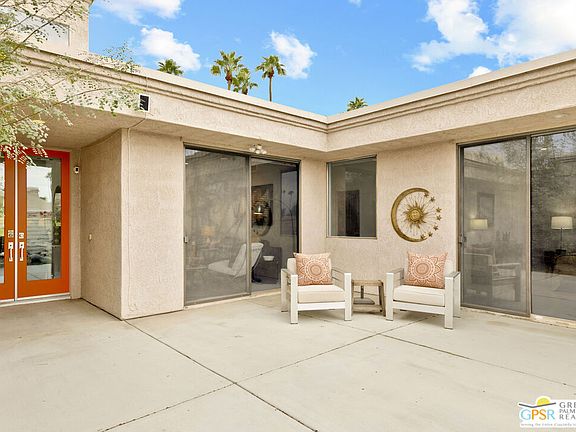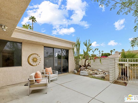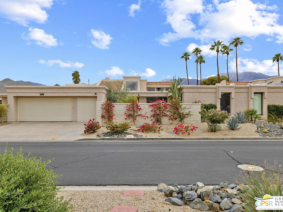 Exceptional Home in Cathedral Canyon Country Club!!!! - This unique residence is one of only twelve homes constructed by the owner and developer of the Club, specifically intended for the personal enjoyment of friends and family. Thoughtfully updated with modern and smart design features, the home offers a blend of comfort and style throughout its layout. Spacious Accommodations - The home features two generously sized suites, each with its own ensuite bathroom, providing privacy and luxury for residents or guests. An additional bedroom includes its own bath, patio, and private entrance offering a perfect retreat for visiting guests. The fourth bedroom or den conveniently opens to the front courtyard, creating a flexible space that can serve as an office, guest room, or relaxation area. Open Living Spaces - At the heart of the home is a large open great room, which seamlessly flows into a well-designed kitchen highlighted by a distinctive blue theme. This layout is ideal for both entertaining and everyday living, fostering a welcoming atmosphere for gatherings with family and friends. Prime Location and Outdoor Living - Conveniently situated between Palm Springs and Palm Desert, the property is within easy reach of a variety of shopping, dining, and entertainment options. The expansive back patio is equipped with electric retractable awnings and a misting system, making it an exceptional setting for outdoor entertaining or quiet relaxation. From here, enjoy spectacular views of the greens, lake, and surrounding mountains, enhancing the home's appeal and providing a picturesque backdrop for every occasion. One of 2 community pools are just steps away but not imposing on the view!!