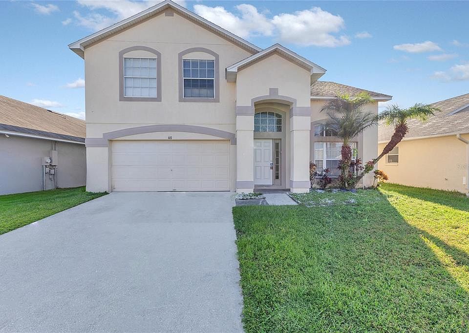 FRESHLY UPDATED!!!! Thousands spent on upgrading the paint and pool deck to freshen the home. Welcome to 681 Eagle Pointe S, this largest model available boasts 4-bedroom, 3-bathroom, 2-car garage, pool home located in the sought-after Eagle Pointe community—a peaceful neighborhood known for its charm, low HOA costs, and unbeatable location. From the moment you arrive, you’re greeted by a classic two-story facade with welcoming palm trees and a stately arched entry. Step inside to discover cathedral ceilings and a light-filled layout that offers both openness and privacy. The oversized living room flows seamlessly into the dining area, making it ideal for gatherings and entertaining. The heart of the home features a central kitchen with granite countertops, food pantry, breakfast bar, and a breakfast nook overlooking the screened-in pool and patio. Whether you're enjoying a quiet morning coffee or hosting guests, the indoor-outdoor flow is effortless. Downstairs, you'll also find a first-floor guest bedroom and full bathroom, perfect for visitors or multi-generational living. Upstairs, the primary suite is a true retreat—with dual closets, one being a walk-in, and an en-suite bath featuring a dual sink vanity with granite countertops, a soaking garden tub, and a separate glass-framed shower. Two additional bedrooms, a full guest bath, and an upstairs laundry room provide convenience and comfort. Step outside to your private backyard oasis: a screened-in pool with a wide sun deck, fully fenced and no rear neighbors for added privacy. With plenty of space for lounging, grilling, or soaking up the Florida sun, this is the ultimate spot to unwind year-round. Situated just minutes from Disney World, Old Town, and other major attractions, this location also puts you close to local parks, shopping centers, and dining options. Enjoy easy access to US-192, SR-417, and I-4, making commuting and weekend getaways a breeze. Don’t miss your chance to own a pool home in one of Kissimmee’s most desirable communities—schedule your private tour today! SOME PHOTOS VIRTUALLY STAGED.