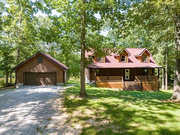 LAKEFRONT LOG CABIN!!! Absolutely gorgeous 4 bedroom, 3 bath, 2 half bath log cabin in the sought after Indian Lake gated community. This home is 3107 sq ft & has a 438 sq ft back porch overlooking the lake with a private dock. The main level has beautiful hardwood floors with custom soft close kitchen cabinets. The basement has gorgeous stained concrete floors with a second primary suite.. Indian Lake is a professionally managed Jimmy Houston endorsed lake where trophy bass are caught on a regular basis. This is an incredible opportunity to live in a great community only 30 minutes from Jackson & within 2 hours to Nashville or Memphis.