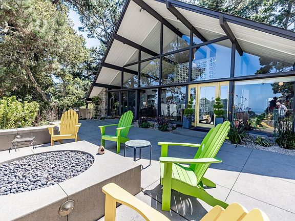 Escape into your cul-de-sac hideaway in the coveted Monterey Vista neighborhood. This stunning A-frame has everything you need to enjoy the beauty and culture of historic Monterey. Architecturally stunning, this home was thoughtfully designed in the sixties and tastefully updated to provide modern amenities. Mid-century breeze block walls take you up the stairs to your second-floor suite with updated bathrooms and views of the bay under beautiful whitewashed redwood boards. A full glass front provides light and openness while a back deck offers privacy beneath Monterey pines. Located five minutes from Del Monte Shopping Center and just seven minutes from downtown Monterey and the beach, this home has equally the convenience of a central location, and the privacy of a hilltop cul-de-sac. Come for the views, and stay for the mid-century vibes and the gorgeous upgrades. Escape into home beneath the pines, above the bay, and take in the beauty of your next adventure.