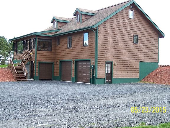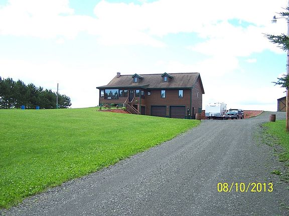 Unique 3 or possible 4 bedroom Rustic Raised Ranch with insulated 2 car garage and unattached 30 x 50 Custom Built Barn which can convert to a 3 car garage. Over 2100 sq/ft of living area including open kitchen, dining, and living room with cathedral ceilings and loft, 2 3/4 baths, finished 8 x 24 enclosed front porch, rear enclosed porch and open deck, main floor laundry room, finished basement family room, small 8x26 insulated garage for motorcyle,atv,or snowmobile storage. Interior log home features but stick framed for maximum heating and cooling efficiency. Average yearly oil consumption heat and hot water is approximately 700 gallons or 4-5 cords firewood and 100 gallons. Interior finish consists of knotty pine ceilings and walls throughout, solid 6-panel pine doors, and a mix of ceramic tile, carpet, vinyl and laminate floors. Exterior finish consists of western red cedar wavey edge siding, asphalt roof shingles, and low e argon casement windows, The property sits on high elevation and is approx. 800 ft. wide by 2100 ft. long consisting of a 2 acre well maintained 20 year old pine tree farm, 4 acres of wooded area, 24 acres of well maintained pasture land, and 1 1/2 acres of beautifully lanscaped front, side and rear yards. This property boasts warm southern exposure, panoramic views, and very much privacy yet just 2 1/2 miles from Long Lake and just 8 miles from schools and shopping. This would make a beautiful retirement home, a great home for a young family needing plenty of space, or an ideal gentleman's farm for animal lovers and naturalists. Real Estate taxes approx. $3300 yr. Real Estate Agents acting as third party are welcomed to inquire.