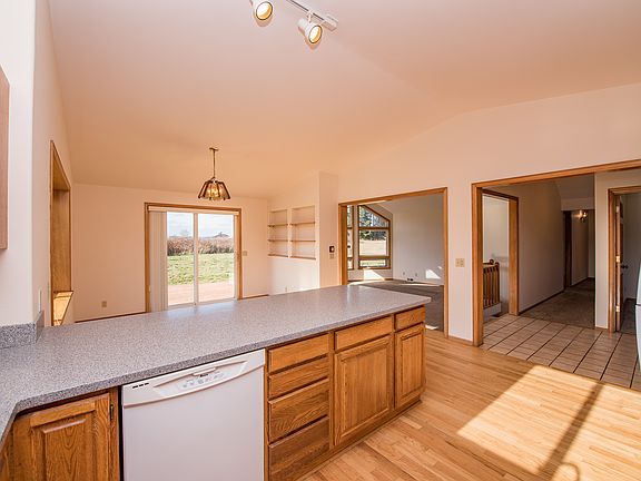 Beautiful level, mt view acreage with a country setting, close to town & the Discovery Trail boasts a large spacious home, mini-barn with attached chicken coop, garden space Highland irrigation & fenced dog run. The single-level-living home has a recently remodeled kitchen with Corian counter tops, stainless appliances including gas stove & new lighting. The master bed/bath, guest bed & office/bd 3 are on the main level, with bedroom, family room & other possible guest space below. Please bring all offers!