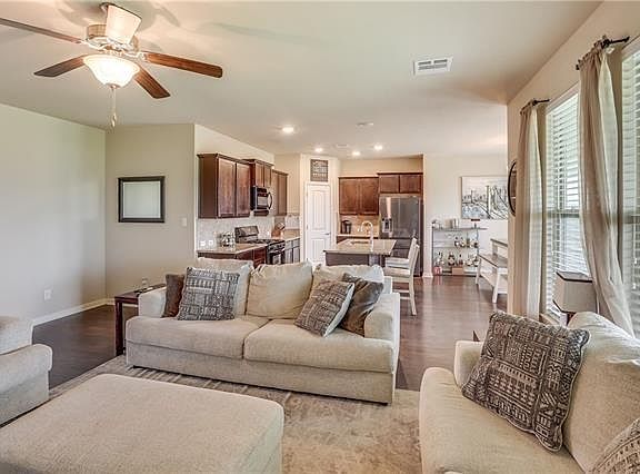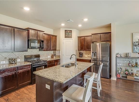 Featuring stylish wood laminate and tile flooring throughout the common areas and owner’s suite. The chef’s kitchen is a true delight, showcasing sleek granite countertops, rich espresso cabinetry, and a spacious island. The owner’s suite offers a double-sink vanity, separate tub, and shower, along with a generous walk-in closet complete with custom built-ins. Enjoy the ample backyard with an extended covered patio—great for entertaining. The fully fenced lawn provides added safety and privacy.