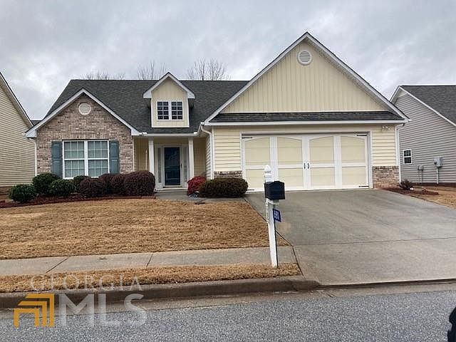 Highly sought after 55+ community in Winder featuring 2 clubhouses, 2 swimming pools, tennis/pickleball courts and playground. This 2- bedroom/2-bath ranch home features a 2-car front entry garage, hardwood floors in the foyer and living room, separate breakfast room, dining room, and a covered patio. Both bedrooms have large walk-in closets. Home is conveniently located near the newly opened Publix shopping center.