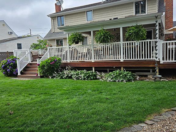 Downstairs, enjoy a full finished basement with a bonus room—perfect for a guest bedroom, office, or gym—and tons of storage throughout. Step outside to your extended outdoor living space, featuring a full-house deck, partially covered with skylights and a ceiling fan—ideal for entertaining year-round. The lush, mature landscaping, koi pond, rock garden, and paved yard from front to back complete the serene setting. Private driveway fits up to 3 cars. This home truly has it all—and it won’t last long! Don’t miss your chance to own this unique gem in Lindenhurst Village.