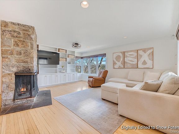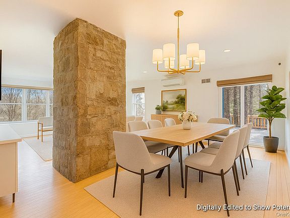 Inside, the home showcases a renovated design with hardwood floors, new mini-splits, and a wood-burning fireplace, creating a warm and inviting atmosphere. The spacious kitchen features ample storage and prep space ideal for both everyday living and entertaining guests.