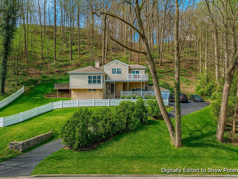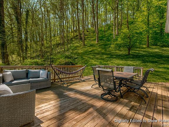 Step outside to a large deck overlooking the expansive wooded backyard, perfect for relaxation or hosting gatherings.