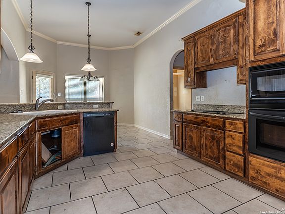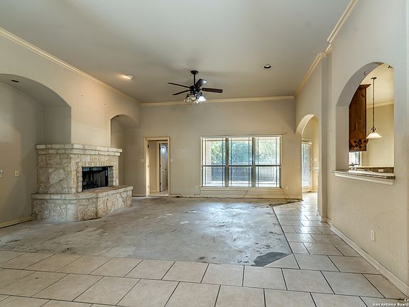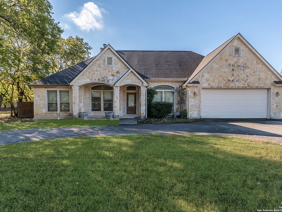 Wonderful potential in this property. Primary is split with two bedrooms on the opposite end of master and an ensuite bedroom/bath separated to the rear. The open living and kitchen areas have high ceilings and feature a floor to ceiling stone fireplace. Kitchen has quality alderwood cabinets. A separate study could service many purposes. All of this on over half an acre lot and just a few blocks from main street. A great opportunity to have a "hill country" house to finish out to suite you.
