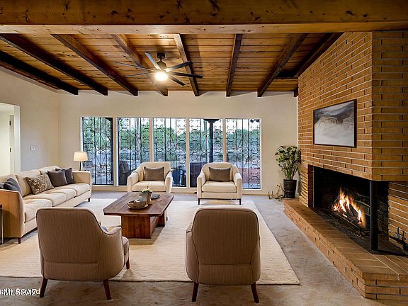 There's a certain magic to Casas Adobes-a neighborhood that locals know by heart, others often discover by chance. Tucked near everything, it feels like a world of its own. Quiet streets and mid-century charm at every turn. Easy walk to whole foods and restaurants. And then there is this home-a true 1956 single owner original.  Built of solid brick, it is quite simply, enduring. It has weathered the decades with quiet grace.  Step inside and you'll feel it: the sense of history, of stories lived, and laughter shared. Wood beamed ceilings and cement floors (some carpet over) Lush landscape frames the home with a myriad of shaded spaces. The covered patio invites long afternoons by the pool, while the front veranda invites you to ''set a spell'' The potential is waiting to be discovered.