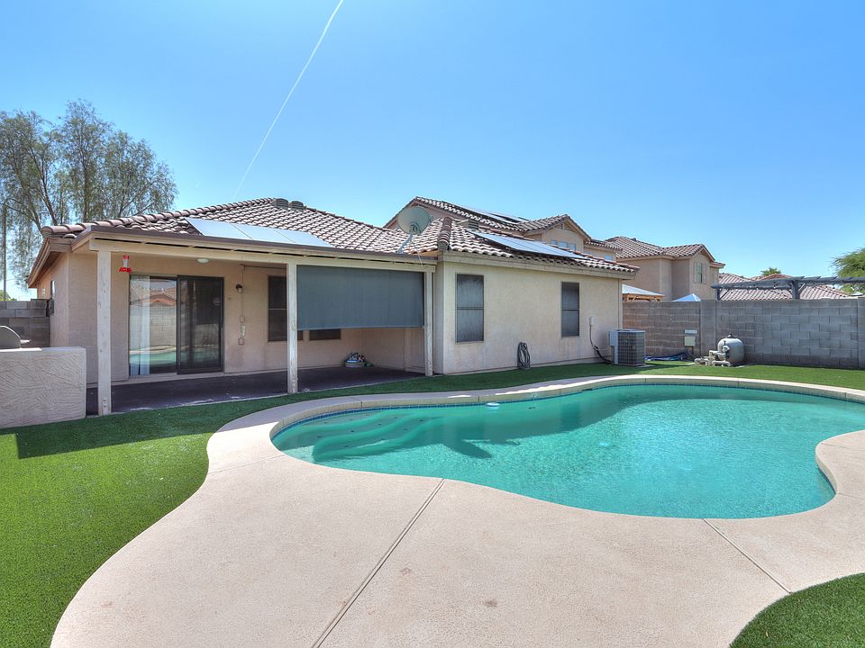 Welcome to your perfect desert retreat! This spacious 3-bedroom, 2-bath home with a bonus den/office offers comfortable living with modern amenities and a resort-style backyard. Step outside and unwind in your private oasis featuring a sparkling in-ground pool, low-maintenance artificial turf, a covered patio, and a built-in grill for outdoor cooking. Inside, you'll find an open and functional layout, including a versatile den ideal for a home office, playroom, or guest space. The home also features tile roof, energy-efficient solar panels, and central A/C to keep you cool year-round. Reach out to us to schedule a tour!