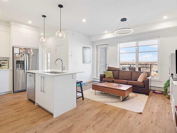 Welcome to the Penthouse at Savanna II Condos, a modern residential complex located in Calgary's vibrant Saddle Ridge community. This west facing 2 bedroom corner unit offers stunning views of the mountains from every room. Stepping into this unit you are greeted with an open concept living and dining area complimented with an eat in breakfast bar, quartz countertops, stainless steel appliances and wide plank laminate flooring. The generously sized primary bedroom offers a walk in closet and a 3 piece bathroom with ample storage and counter space. The second bedroom gives you the flexibility of a bright home office or space for guests with a large closet. Completing this unit is a 4 piece bathroom for visitors, 1 underground parking stall and a balcony with a gas line. The building also offers top tier amenities including a fully equipped gym, an owner’s lounge, bicycle storage, and more.