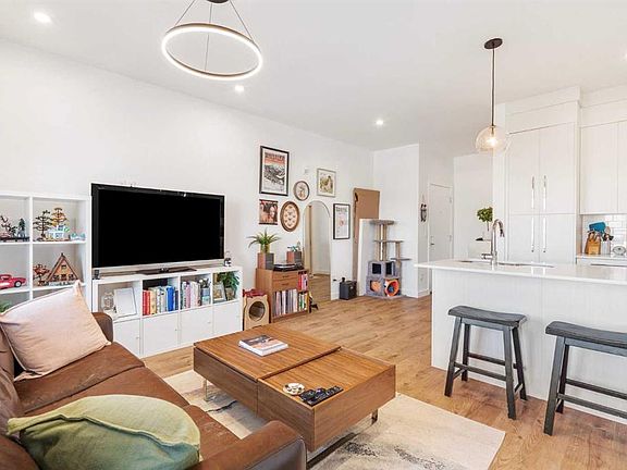 West facingCorner unitEat in breakfast barQuartz countertopsStainless steel appliancesWide plank laminate flooringGenerously sized primary bedroom