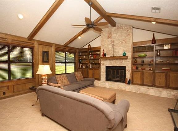 Reduced to sell*Updated 4 bed,2 bath home*no popcorn ceilings*Trees,trees*Parklike backyard,deck*Huge liv.area w/massive stone fireplace*Vaulted ceiings*Formal din.great for entertaining*View to backdeck *updated kitchen w/granite counters*lots of room for cooking*updated stainless steel appliances*master w/door to deck*master bath wl walkin closets;updated tub and tile*skylites to capture natural light*Granite inbathrooms*Back yard big enough for all hobbies*dont miss this!Accl.RRISD!plantation shutters