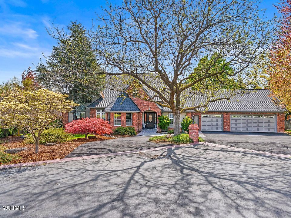 Once in lifetime chance to own a Kline Built Yakima Valley estate for under $250 per square foot. 75 % LESS than replacement cost! The price also includes 3/4 acre lot in gated community with beautiful mature landscaping, pool, spa, pickleball court, new flooring, paint, appliances, roof and driveway and $75K master bath remodel! Perched atop Scenic Drive, this expansive, nearly 8000 square feet, home is a true masterpiece that commands attention from the moment you arrive. Its prime location at the end of a tranquil cul-de-sac, surrounded by only a few custom homes, ensures both privacy and exclusivity. As you approach this remarkable property, the grand circular drive creates a striking first impression, leading you to an entrance that exudes elegance and sophistication. Step inside, and you are immediately captivated by the soaring ceilings and the large front room, which features a grand piano and a cozy gas fireplace--ideal for intimate gatherings or entertaining guests. To the right, the spacious formal dining room accommodates 12 or more, complete with a built-in buffet, making it the perfect setting for memorable dinners and celebrations. The heart of the home is the gourmet kitchen, designed with ample working space for all the chefs in the family. Highlights include double ovens, a gas cooktop, and abundant storage for every kitchen appliance needed to create culinary masterpieces. Casual dining is a delight here, with scenic views of the covered back patio and the inviting pool.The large living room, wrapped in windows, invites an abundance of natural light, creating a warm and welcoming atmosphere for relaxation and entertainment. The main floor also features a primary suite that is truly a retreat. Recently remodeled, the ensuite bathroom is right out of Architectural Digest, showcasing stunning finishes and a spa-like ambiance.